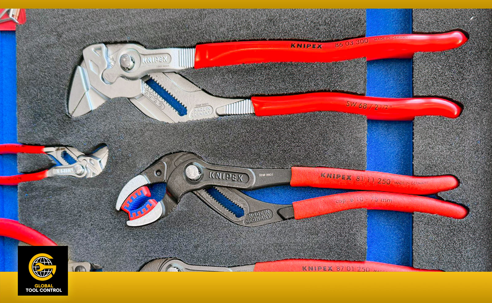 At Global Tool Control we source only the highest professional-grade quality brands of tools to ensure your tool kit system can stand of test of time. Our favourite brands include: Snap On, Williams, Pelican, Coast Lighting, Industrial, KNIPEX, Wera, DeWalt, Milwakee, Rosseau Metal Tool Boxes, Fluke, DMC (Daniels Manufacturing company), Mac Tools, and more.